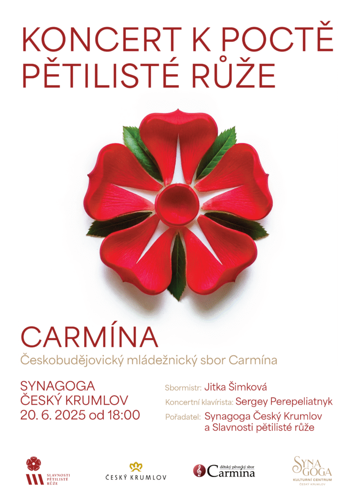 Náš koncertní sbor CARMÍNA vystoupí na Slavnostech pětilisté růže v Českém Krumlově. Celovečerní koncert Carmíny k poctě pětilisté růže se uskuteční v Synagoze od 18:00 hodin. Na programu skladby našich a zahraničních autorů a lidové písně s folklórními prvky. Sbor předvede ukázky soutěžního programu, který byl připravovaný pro soutěž v New Yorku, kde si Carmína vyzpívala zlatou trofej. Srdečně Vás […]